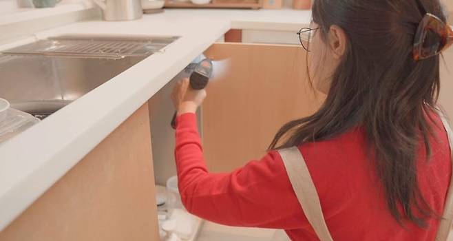 상태가 심각했던 싱크대 수납장 부분은 시트지 시공을 했습니다. 요즘은 정말 좋은 세상이라 전문 지식이 없어도 검색만 하면 업계 최고 전문가분들께서 하나부터 열까지 방법을 잘 알려주시더라고요. 영상을 보면서 차분하게 하나씩 진행해보았어요.