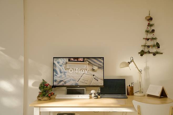 처음에는 책상을 방안에 놓고 사용했는데 눈에 보이지 않는 가구는 다소 이용 빈도가 줄어드는 것 같더라고요. 역시 공부도 일도 거실에서 해야 능률이 오르는 것 같아 과감하게 거실 한쪽 벽면을 내어주었습니다. 오전에는 제가 앉아서 일을 하고, 저녁에는 남편이 앉아서 대학원 공부를 하는 데에 유용하게 사용하고 있답니다.