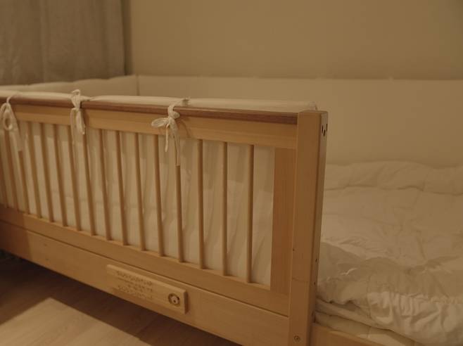 숲소리 스토리 침대는 아이가 12개월 때부터 사용했는데요. 아이가 어릴 때는 4면을 모두 막은 상태에서 사용하다가 어느 정도 성장한 후에는 작은 문을 개방해 사용하고 있고, 침대에서 떨어지지 않을 나이가 되면 한 면 전체를 떼어 모두 개방할 수 있어서 아이의 성장 주기에 따라 변화를 주며 사용하기에 참 좋은 제품이라고 생각해요.