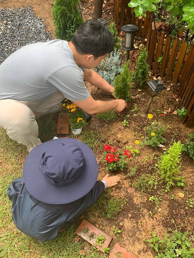 시간이 날 때마다 잔디를 심고, 자갈을 깔고, 식물을 심으면서 천천히 마당을 정비해가기 시작했어요.