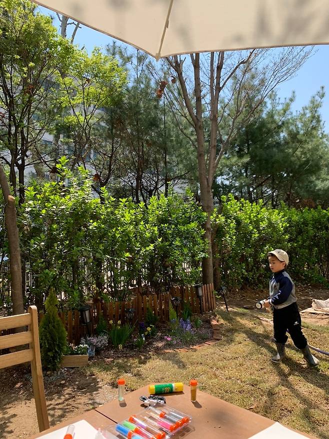 자연은 가장 무해한 보모가 아닐까요? 조물거릴 수 있는 흙과 찰방거릴 정도의 물, 몇 개의 돌로도 신나게 노는 아이를 보고 있으면 세상 가장 유능한 보모에게 아이를 맡겨둔 것만 같았습니다. 그래서 아이에게 정원이라는 공간을 선물해주고 싶었어요.