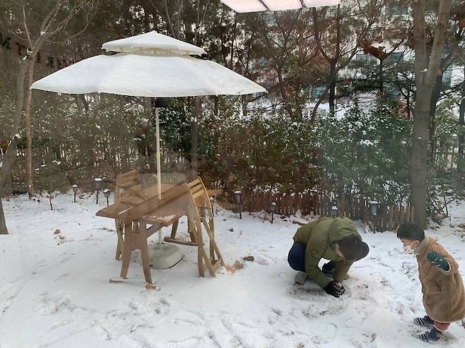 눈이 소복하게 내린 날, 햇빛에 녹을지언정 타인에 의해 부숴지지 않을 눈사람을 만들 우리만의 공간이 있다는 것도 아이에게 참 즐거운 일이었어요.