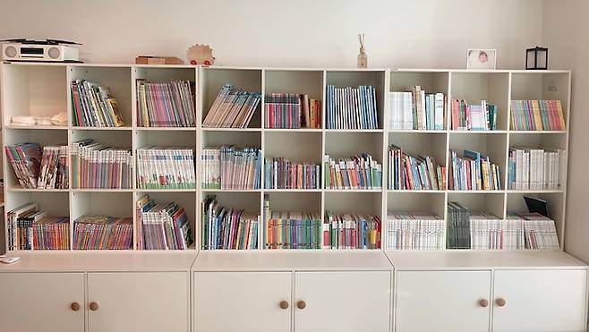 리바트 꼼므 책장을 3세트 구매해서 이어 붙여 사용하니 책 수납과 장난감 수납이 동시에 해결되었고, 디자인도 깔끔해서 쓸수록 만족스러운 가구랍니다. 하부 수납장이 굉장히 크고 깊어서 아이의 장난감의 대부분이 저 공간 안에 수납되더라고요. 또한 수납장 윗부분에 앉아서 놀거나 책상으로 사용해서 책을 읽는 등의 용도로도 사용돼요.