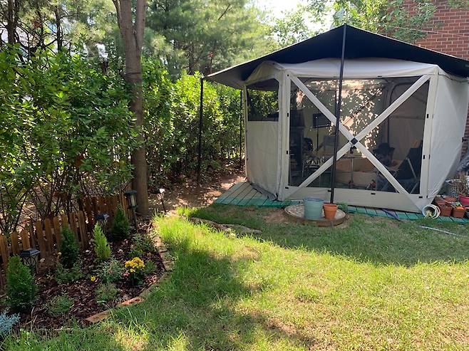 정원을 예쁘게 가꾸는 것이 저의 로망이었다면 남편의 로망은 마당에 텐트를 두고 마당캠핑을 하는 것이었어요.