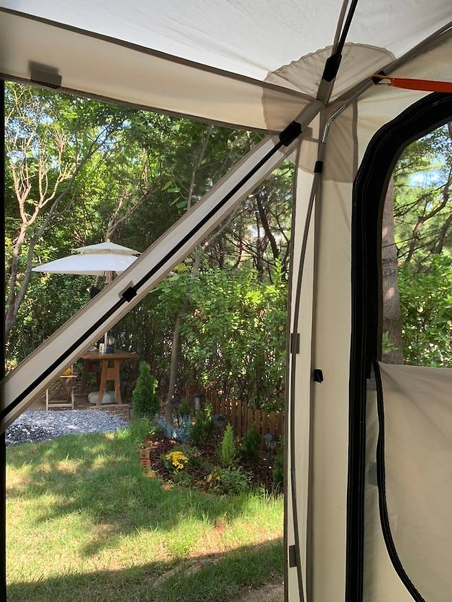 텐트에서 정원을 바라본 모습이에요. 가장 좋아하는 구도이기도 하죠 :)