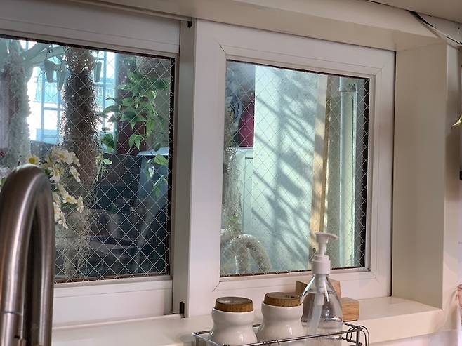 설거지 하는 공간의 작은 창문도 페인트 시공을 통해 깔끔하게 바꿔주었고요.
