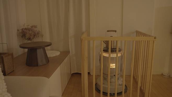 이 집에 한 눈에 반하게 만들었던 멋진 큰 창이 한겨울에는 집을 정말 춥게 만들어요. 때문에 그 한기를 데우기 위해 석유 난로가 필요했어요. 주전자를 올려두면 가습 효과도 있고 따뜻한 차를 자주 마실 수 있어서 참 좋아요.