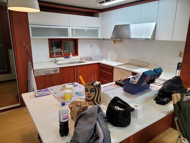 우선 저는 인덕션을 사용하고 있는데 기존에 있던 싱크대가 인덕션 설치에 적합하지 않을 뿐만 아니라 부숴지기 일보 직전인 상태여서 버리기로 결정했어요.