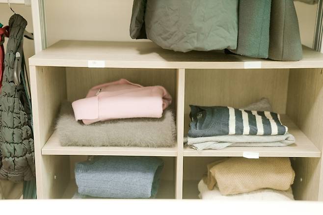 옷이 여러 겹 쌓여있으면 바쁠 때는 꺼내 정리하기가 귀찮아 잘 손이 안 가기에 두 벌씩만 올려두려 해요.