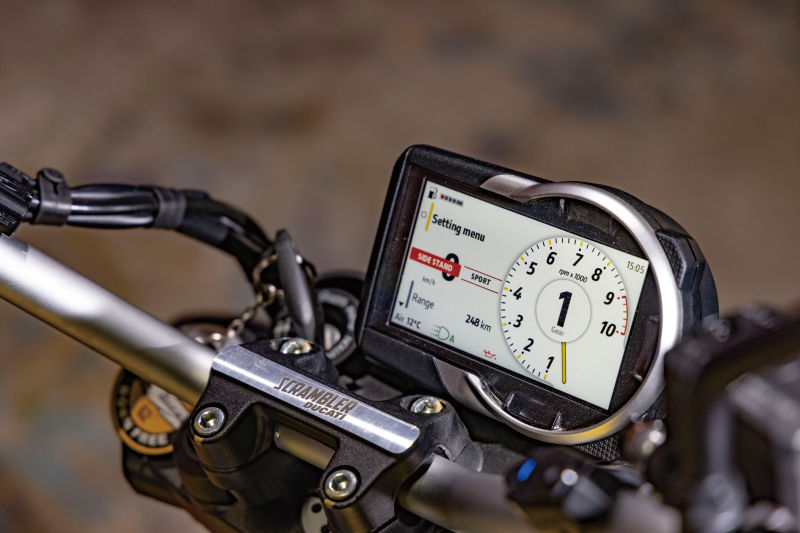 기존 1세대와 1.5세대 스크램블러가 공개되었을 때, 사실 시대에 맞지 않는 전자장비와 기능적인 옵션 측면에서 아쉬움이 있었다. 아쉬움이 있어서 더 반가운 것일까, 이번 2세대 두카티 스크램블러에는 전자장비를 비롯해 기능적인 측면에서도 많은 업그레이드가 이뤄졌다. 이전 모델에서 헤드라이트에 LED 적용이 제외되었었는데, 신형에는 헤드라이트까지 모두 LED가 적용되었다. 그리고 4.3인치 TFT 계기반이 적용되면서 시인성이 대폭 향상되면서 라이딩 모드를 포함해 주행 중 필요한 핵심 요소들을 한눈에 볼 수 있게 되었다. 계기반에 조도 센서가 장착되어 낮에는 흰 배경의 밝은 화면이 표시되고 밤에는 눈 피로도가 덜한 검정 배경으로 자동 전환된다. 라이딩 모드가 생겼다. 스포츠와 로드 두 가지 옵션이 생겼고 기존에 없어서 가장 아쉬웠던 트랙션 컨트롤(DTC) 기능까지 추가되었다. 트랙션 컨트롤은 총 4단계로 조절할 수 있고 필요에 따라 끌 수도 있다. 로드 모드는 초반부터 스로틀을 부담 없이 쥐어짜도 될 만큼 느긋한 초반 스로틀 반응을 보이지만 최대 토크 지점에 다다르면 스포츠 모드와 다를 것 없이 경쾌한 출력을 사용할 수 있다. 반면 스포츠 모드는 초반부터 빠른 스로틀 반응으로 저rpm 영역에서 좀 더 두꺼운 토크 영역을 이용할 수 있어 최대 토크 rpm에 도달할 때까지 로드 모드에 비해 선형적인 가속감을 느낄 수 있다. 최근 네이키드 바이크에서 프런트의 ABS 개입을 지연시키고 리어 ABS를 끌 수 있는 옵션이 적용되는 추세라 적용되었을까 기대했지만, 아쉽게도 이번 두카티 스크램블러 아이콘에서는 이전 세대와 마찬가지로 ABS 개입 여부를 바꿀 수 없다. 퀵시프터 옵션이 추가되었다. 기본으로 장착되어 있지 않은 점이 아쉽지만, 그래도 옵션으로 장착할 수 있는 것만으로도 반가운 소식이다. 이번에 출시한 두카티 스크램블러 모델 중 아이콘과 나이트 시프터 모델은 퀵시프터가 옵션이지만, 풀 스로틀 모델은 기본 구성에 포함된다.