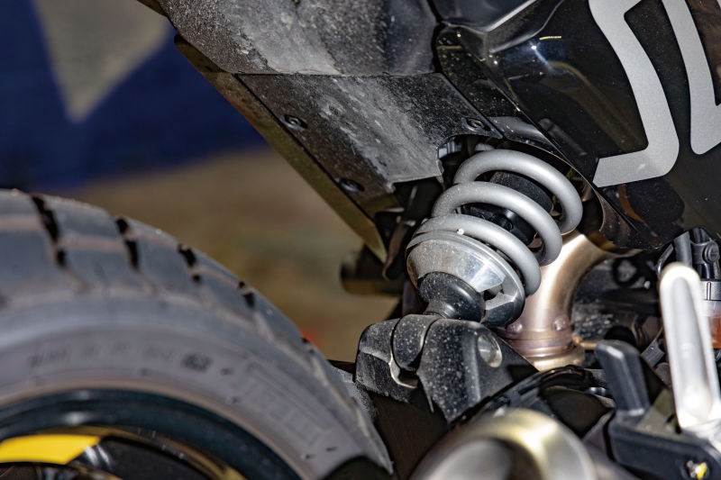 최대 토크가 뿜어져 나오는 7,000rpm 언저리부터, 정확하겐 6,000rpm부터는 바이크 속의 다른 자아가 나오는 것처럼 진동과 배기음이 달라지고 출력과 토크가 터져 나온다. 바이크가 어서 속도를 즐기라고 부추기는 느낌이랄까. 여기에 41mm 도립식 카야바 서스펜션과 피렐리 MT 60 RS 타이어가 그 출력을 받아주면서 본격적인 스포츠 주행을 이어나갈 수 있다. 출고 시 기본으로 장착된 타이어는 이 바이크가 어딜 갈 수 있는지 보여주는 가장 간단한 지표다. 피렐리의 MT 60 RS 타이어는 본격적인 오프로드를 제외하면 임도길이나 꽤나 본격적인 와인딩 로드, 스포츠 주행까지 커버한다. 기본으로 장착된 타이어의 성능이 떨어지거나 바이크의 목적과 맞지 않아 다른 타이어로 바꾸는 경우가 종종 있는데, 도로에 돌아다니는 두카티 스크램블러를 보면 연식이나 주행거리가 꽤 되는 바이크들 대부분이 피렐리 MT 60 RS 타이어를 장착하고 있다. 그만큼 피렐리 MT 60 RS 타이어가 커버하는 오프로드와 온로드 두 영역 모두에서 재밌게 탈 수 있는 바이크라는 방증이기도 하다. 오프로드를 기준으로 하면 충분하진 않지만 150mm 트래블을 확보한 카야바 서스펜션과 높고 넓은 핸들바 덕분에 오프로드에서의 주행도 편한 편이다. 게다가 795mm의 낮은 시트고 덕분에 발 착지성이 좋아 오프로드 경험이 적거나 없는 라이더에게 오프로드의 진입장벽을 낮춰준다. 싱글길이나 본격적인 산길을 타기엔 모든 요소가 조금 부족하지만 모토캠핑이나 투어 중 맞닥뜨리는 임도 정도는 초보자도 쉽게 도전해볼 수 있는 세팅이다. 그리고 별다른 튜닝이나 셋업 변경 없이 출고 상태 그대로 재밌게 즐길 수 있다.