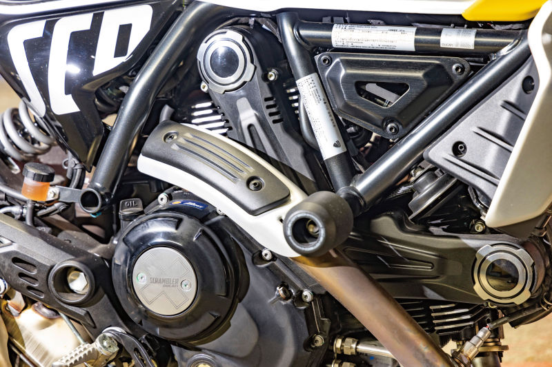 스크램블러 아이콘의 가장 큰 매력 세 가지를 꼽으라면 가벼운 무게, 만만함, 스타일이다. 미들급 네이키드 시장에서 스크램블러 아이콘은 가벼운 쪽에 속한다. 클래식 혹은 네오 클래식을 추구하고 있는 모델 사이에선 압도적으로 가볍다. 심지어 이전 모델 대비 새로워진 스윙암과 프레임, 서브프레임, 클러치에서 4kg 추가 감량을 이뤄냈다. 낮은 무게중심에 가벼운 핸들링 덕분에 다루기 쉽고 민첩하다. 자칫 핸들링이 너무 가벼우면 조작의 고급감이나 안정감이 떨어지는데, 150mm 트래블을 가진 전후 카야바 서스펜션과 크기 대비 긴 휠베이스가 그 점을 보완한다. 두카티 스크램블러는 같은 조향각을 만들 때 다른 바이크보다 팔과 몸의 움직임이 많아 더 다이내믹하게 느껴진다. 높고 넓은 핸들바 덕분이다. 네이키드 바이크보다 긴 서스펜션 트래블과 어드벤처 바이크보다 가벼운 무게에 낮은 시트고, 프런트 18인치, 리어 17인치 휠 셋이 스크램블러만의 독특한 재미를 만들어낸다.