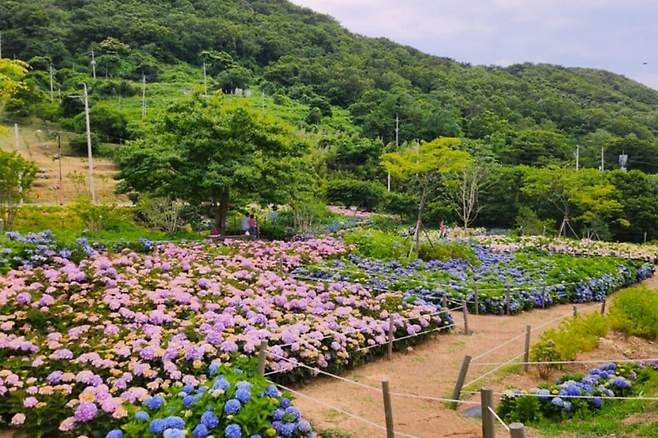 부산시 강서구 대항동 산13-23번지에 위치한 외양포 야생화단지에서는 2020년부터 식재된 수국 장관을 만나볼 수 있다.