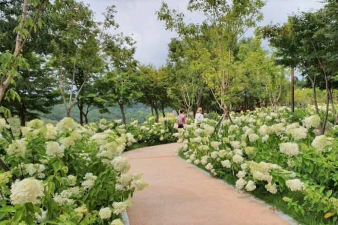 내리문화공원은 수국 정원, 캠핑장, 구절초동산 등으로 구성되어 있어, 이 시기에 시민들에게 수국을 감상할 수 있는 편안한 휴식처가 되어준다.