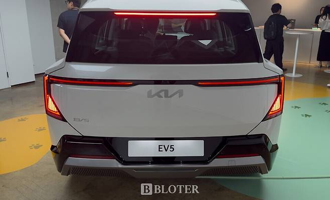 EV5의 차체 크기는 △길이 4610㎜ △너비 1875㎜ △높이 1680㎜ △휠베이스 2750㎜다. 뒷좌석 무릎 공간과 머리 공간은 키 180㎝ 넘는 성인이 타기에 여유로운 편이다. 기아는 EV5 뒷좌석의 무릎 공간이 1041㎜로 동급 최고 수준이라고 자신했다. 2열 좌석을 접으면 넓고 평평한 공간이 연출돼 물건을 싣거나 차박을 즐기기 좋을 것으로 보인다.