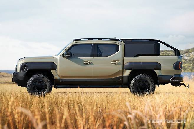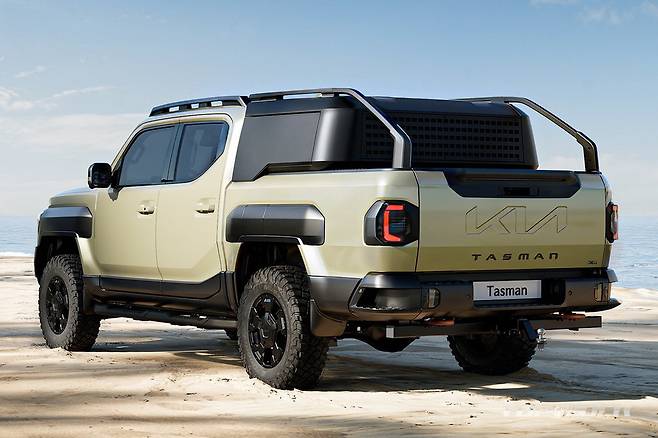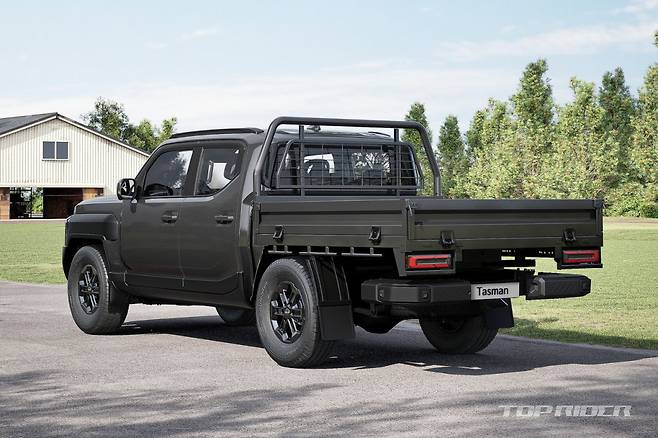 한편, 타스만 차체 크기는 전장 5410mm, 전폭 1930mm, 전고 1870~1920mm, 휠베이스 3270mm로 KGM 렉스턴 스포츠 칸과 유사하다. 타스만 내외관에는 기능적인 디자인 요소가 적용됐으며, 다양한 첨단 사양을 지원한다. 최대 800mm 도강, 최대 적재량 700kg 등을 갖췄다.