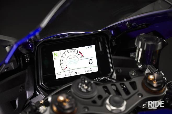계기판은 5인치 TFT 풀컬러 디스플레이를 장착해 주행 정보를 높은 시인성으로 제공하고, 트랙 주행을 위해 랩타이머도 내장되어 있다. 또한 스마트폰을 블루투스로 연결해 전화 송수신이나 음악 재생은 물론이고 차량 설정을 변경할 수도 있는데, 내비게이션의 경우 기존 티맥스와 마찬가지로 가민의 앱을 사용해야 지원 가능하지만 국내는 지원하지 않으므로 사용할 수 없을 것으로 보인다. 다만 트랙 주행 시 관련 정보의 경우 Y-TRAC앱을 통해 랩타임 및 구간 별 기록, 기울기 각도, 엔진 회전수, 기어 위치, 속도, 스로틀 위치, 트랙션 컨트롤 등 차량의 정보들을 스마트폰을 통해 전달받을 수 있다. 또한 스마트폰 연동 시 서킷 주행 중 대시보드에 메시지를 보낼 수 있는 가상 피트보드 옵션도 제공한다고. Y-TRAC앱은 구독형으로 제공되며 무료 체험판으로 경험해볼 수도 있다.