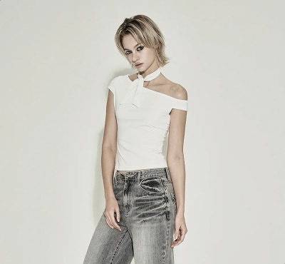 이 티셔츠는 스카프와 세트 상품이지만, 미연은 스카프 없이 티셔츠만 단독으로 착용했습니다. 올해 유행하는 원숄더 반팔 디자인이 부담스럽지 않아, 오프숄더 스타일을 처음 시도하는 분들도 부담 없이 소화할 수 있습니다. 다만, 건조기 사용은 피하는 것이 좋습니다.