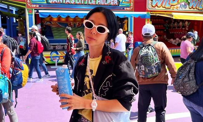 김나영은 아들과 함께 캘리포니아 여행 중 빠질 수 없는 '유니버셜 스튜디오 할리우드'를 찾았습니다. 그는 "유니버셜스튜디오 갔다가 2kg 빠진 날"이라고 말해 웃음을 자아냈는데요. 사진 속 김나영은 지친 기색이 역력했죠.