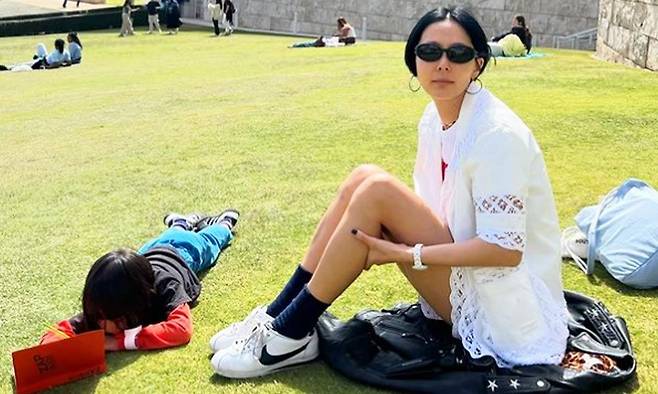 김나영은 아들과 함께 해변에서 원반던지기하면서 시간을 보냈는데요. 모래 위로 몸을 던지며 아들과 놀아주는 모습을 공개했죠.