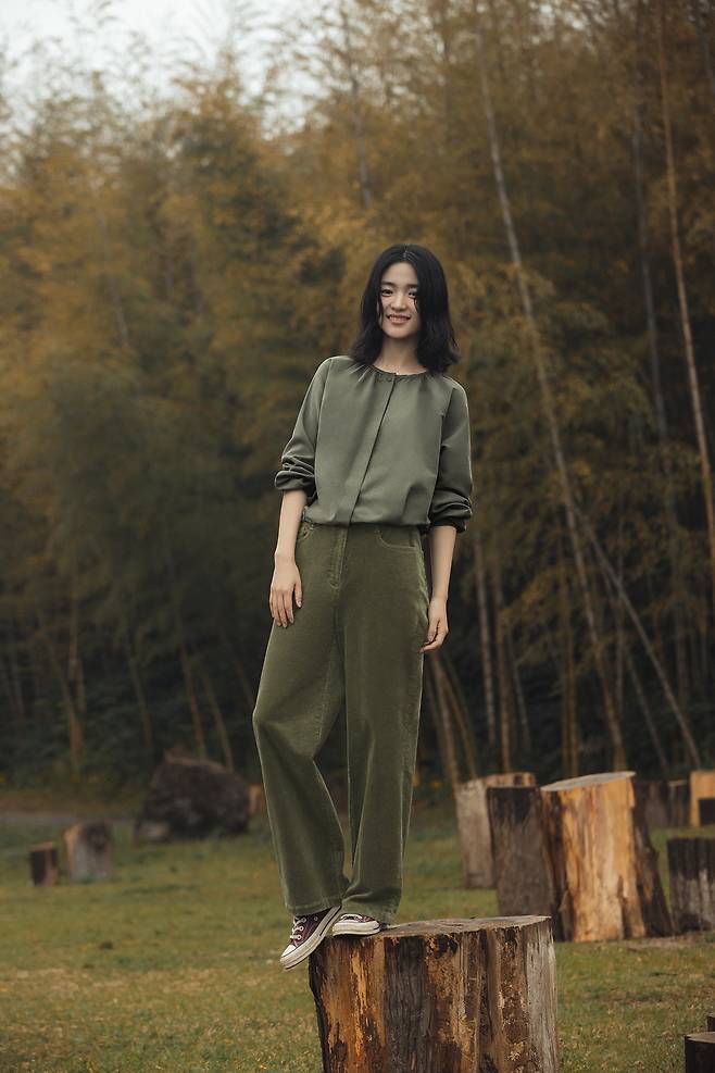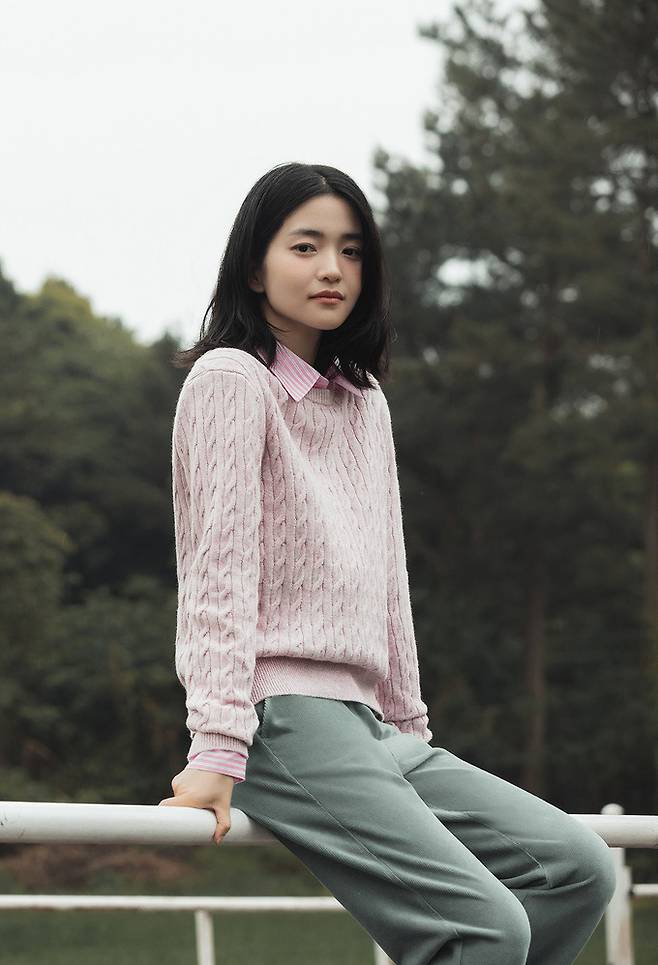 레드 컬러 케이블 스웨터와 부드럽게 감싸는 핑크 스웨터, 깊은 분위기를 전하는 카키 톤온톤 스타일링으로 자연과 어우러진 차분한 무드를 완성했습니다.