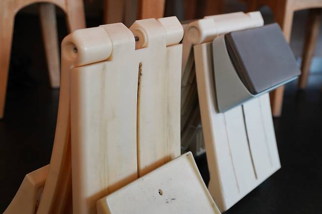 슬라힙을 완성하기까지 총 7개의 시제품을 만들었다. 시제품이 나올 때마다 ‘라인에 반하다’ 센터 회원들을 대상으로 테스트했다. “10~15년간 운동을 지도해온 터라 제 사정을 다 알고 계셨어요. 운동 기구를 개발한다고 할 때부터 응원해 주셨죠. 직접 써보시곤 절대 좋은 소리만 해주시지 않았습니다. 무릎을 대고 오래 운동하면 배겨서 불편하다는 후기가 많았어요. 실내화에 주로 쓰는 ‘보드폼’으로 패드 소재를 바꾸고, 1.3㎝ 두께의 패드에 1.5㎝를 덧대 2.8㎝로 다시 만들었습니다.”