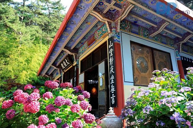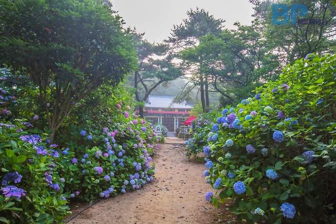 5월에 피는 불두화와 닮은 수국은 사찰에도 많이 식재되는 꽃이다. 수국이 핀 사찰은 초여름에 방문하기 좋은 명소다.