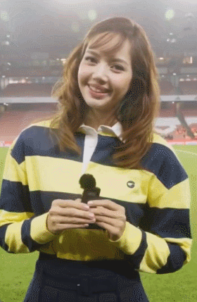 리사는 옐로 블랙 스트라이프 럭비 셔츠를 입고 상큼하고 발랄한 매력을 선보이며 경기장의 분위기를 한층 밝게 물들였는데요!