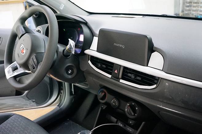기아의 모닝의 이번 세대 (JA)의 출시 때, 최저 950만 원대의 출고가를 자랑했는데, 950만 원이라는 가격을 고려하더라도 받아들이기 어려운 구성으로 논란이 되었던 바 있다. 바로 오디오 패널이 아예 존재하지 않는 것이다. 오디오가 있어야 할 자리는 '모닝' 레터링이 인쇄된 플라스틱 커버만 덩그러니 위치할 뿐이었다. 심지어 해당 베이직 플러스 트림은 일명 '닭다리' 창문을 자랑해 충격을 선사했다.