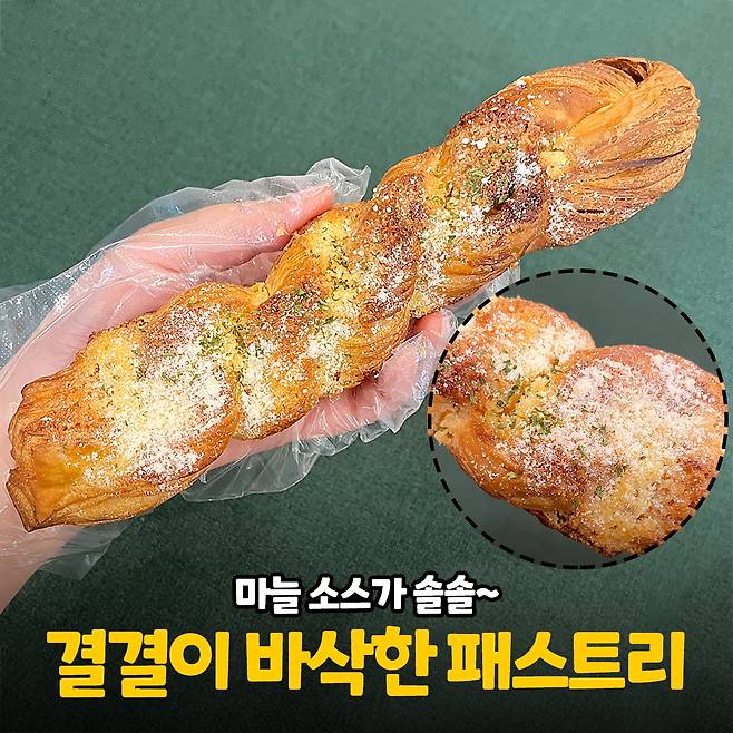 일반 마늘빵은 몇 개 먹으면 느끼하기도 하고 물리는 경향이 있는데 이것은 패스트리가 바삭하고 느끼하지도 않아서 맛있었습니다. 마늘 바게트보다도 더 맛있는 맛!