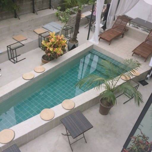 푸른 물이 가득 찬 풀장 주변으로 썬베드가 놓여있어, 마치 해변에 와있는 듯한 분위기를 자아냅니다. 이국적인 분위기 속에서 여유로운 시간을 보내고 싶은 분들께 완벽한 장소입니다.