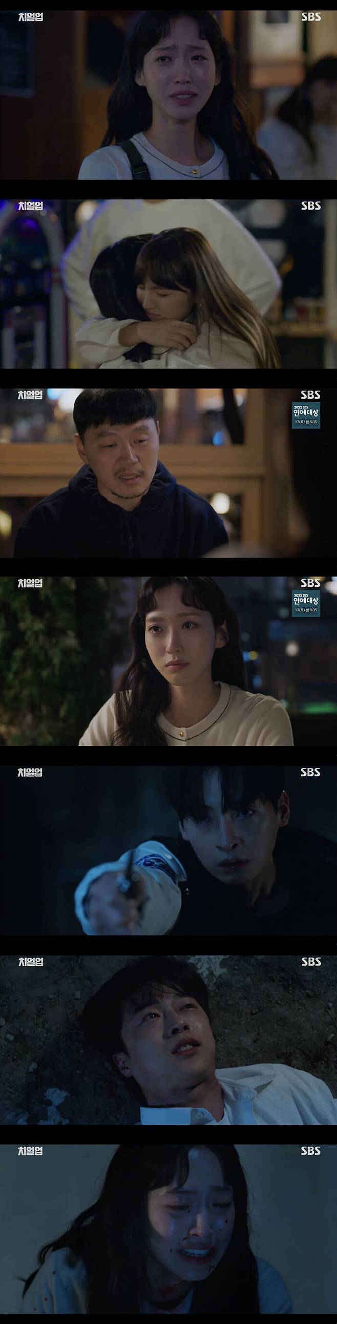 김진일은 칼을 들고 도해이에게 더욱 다가갔다. 이때 박정우가 등장해 도해이를 향해 다가오는 칼을 대신 막아냈다. 그리고 도해이 대신 본인이 다친 것이 다행이라고 안도해 안타까움을 자아냈다.