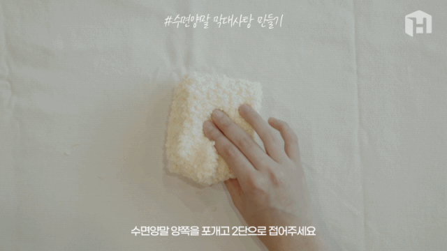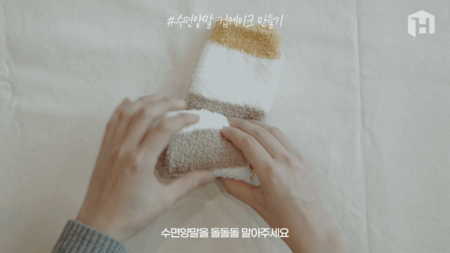 5. 수면양말을 아까와 같이 비스듬하게 말아준 후
