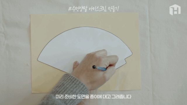 1. 고깔 도면을 종이 위에 놓고 따라 그려준 뒤
