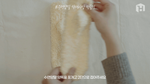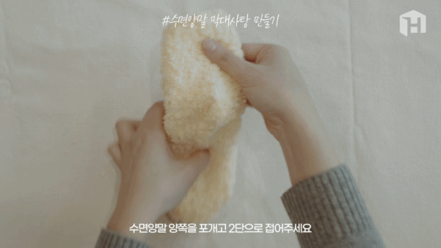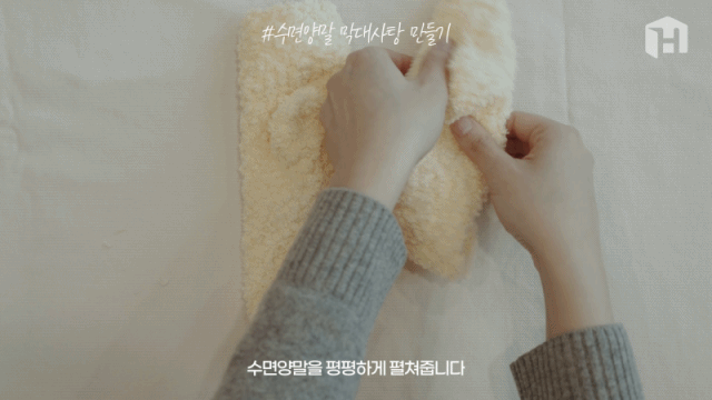 7. 양말과 막대가 이어지는 중앙 부분을 잡아 잘 정리해줍니다.