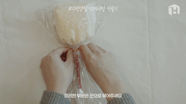 8. 그리고 끈으로 꽉 묶어주세요.