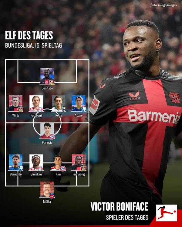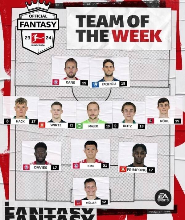 현지 매체에 이어 분데스리가 공식 이 주의 팀에도 선정됐다. 분데스리가 사무국은 19일 공식 홈페이지를 통해 15라운드 이 주의 팀을 공개했다. 3-5-2 포메이션으로 꾸려진 라인업 가운데 김민재가 중앙 센터백 자리를 차지했다. 뮌헨에서는 케인과 알폰소 데이비스가 함께 이름을 올렸다.