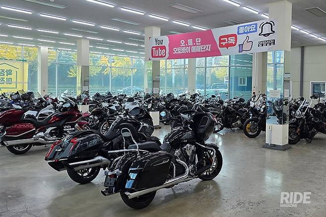 중고자동차는 장안평을 비롯해 인천이나 부천 등 각 지역별로 의 매매단지가 오래 전부터 형성돼 소비자들이 쉽고 편하게 매물을 직접 보고 거래 할 수 있었다. 하지만 모터사이클은 오프라인 매매단지라고 할 수 있는 곳이 상대적으로 적었고 규모나 매물의 수도 자동차와 비교하면 너무 부족했다. 그래서 중고모터사이클의 거래는 대부분 작은 규모의 센터를 통해 이루어지는 것이 일반적이었고 덕분에 라이더끼리의 직거래도 활성화 되어있는 상태였다. 하지만 최근에는 모터사이클 시장에도 중고 매물에 인증중고의 개념으로 보증이나 사후처리에 신경을 쓰는 업체들이 생겨나면서 중고모터사이클 시장이 조금씩 활성화되고 있는 중이다.