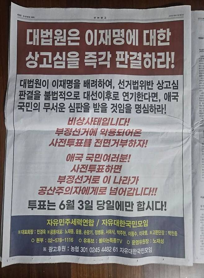 오늘자 조선일보 신문 전면광고. jpg