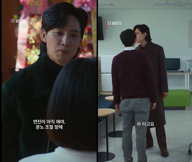 문동은(송혜교 분)를 위해 망나니 칼춤을 추며 돕는 주여정을 찾아간 장면에서도 애드리브가 나왔다. 주여정이 "시술이나 관리 받으실거면 나가시면서 예약하시구요"라고 하자 "까딱 잘못했으면 나가다 예약할뻔, 안사요"라고 답한다. 성대를 다친 혜정이의 거친 신음소리 뿐인 대사를 찰떡같이 알아듣는 것도 재준이의 초능력이다. 또 친딸 예솔이를 데려오려는 전재준은 아이들 기관지에 개털이 안좋다는 말을 듣고 늘 애지중지하던 반려견 루이를 섬뜩하게 쳐다봤다. 하지만 전재준은 미용실에서 루이의 털을 밀고 추울까봐 옷까지 입혀 다니는 모습으로 웃음을 줬다.