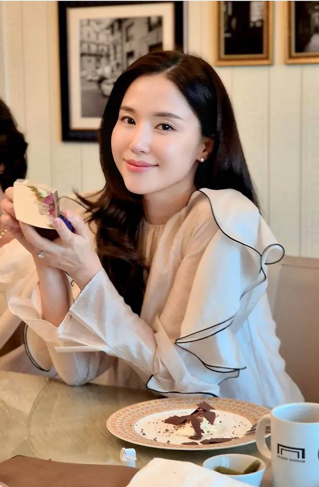 공현주는 베이지 컬러의 러플 디테일 블라우스를 선택해 우아하고 단아한 이미지를 연출했습니다.