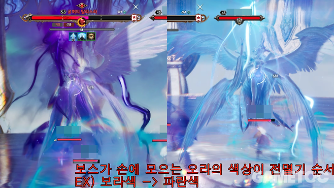 - 보스가 손에 모으는 오라의 색상 파악 후 전멸기 순서에 따라 안전 지역 이동