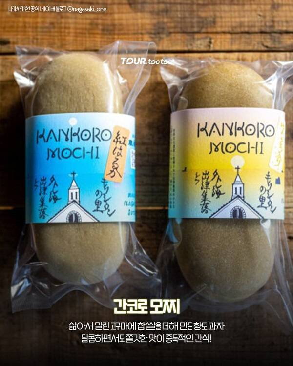 ‘간코로 모찌’는 삶은 고구마를 말린 뒤 찹쌀가루를 더해 만든 나가사키의 전통 과자입니다. 쫄깃한 식감과 자연스러운 단맛이 특징으로, 건강한 간식으로 인기가 높습니다.