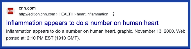 위에서 알아본대로 기사 제목을 풀어 보자. 주어인 ‘염증(inflammation)’이 on 뒤에 나오는 ‘인간의 심장(human heart)’에 악영향을 미치는 것으로 보인다. 이렇게 이해할 수 있겠지?