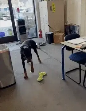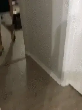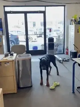 엄하게 꾸짖는 견주의 목소리에 화들짝 놀란 도베르만은, 마치 "세상에, 이렇게 무서운 장면은 처음이야! 어서 도망가야 해!"라고 외치는 듯 혼비백산합니다.