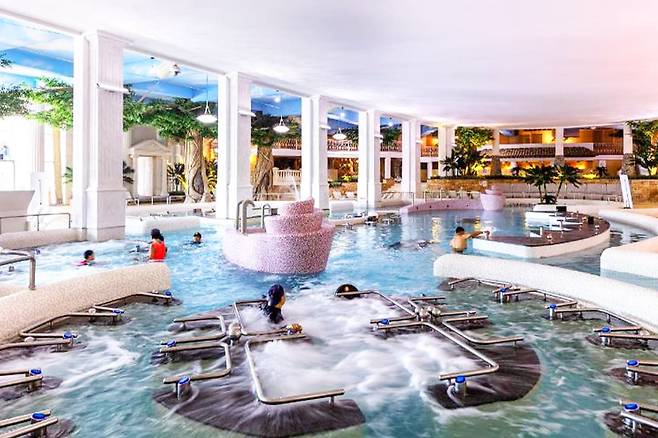 '국민 보양 온천'으로 지정된 파라다이스 스파 도고는 야외 온천과 현대적인 시설이 조화를 이루어 남녀노소 모두에게 인기 있는 명소다.