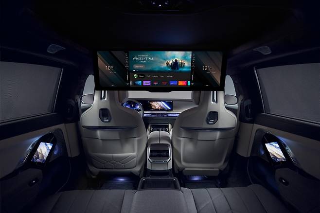 뒷좌석에는 31.3인치 파노마라 디스플레이 'BMW 시어터 스크린'이 최초 적용됐다. 32:9 화면을 바탕으로 최대 8K 해상도를 제공한다. 이를 통해 고화질 영상을 즐길 수 있음은 물론, 5G 커넥티드 기술을 이용해 유튜브 스트리밍을 포함한 다양한 엔터테인먼트를 즐길 수도 있다.