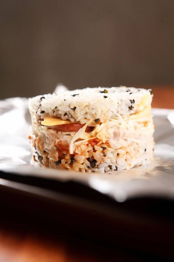 스팸을 싫어하는 아이들은 없을 것이다. 하지만 몸에 좋지 않을까 하는 걱정에 잘 안 먹이게 되는데 소풍날 정도는 아이들을 위해 도시락으로 준비해보는 것도 나쁘지 않다. 스팸 통조림에서 스팸을 꺼내 통조림통에 맞춰서 자른 뒤 구워주고, 마찬가지로 치즈도 크기를 맞춰 잘라주면 속 재료 준비는 끝난다. 통조림통에 맞춰 밥과 스팸, 치즈를 기호에 맞춰 순서대로 쌓아 올리면 된다. 이때 먼저 통에 비닐이나 랩 등을 깔아놓으면 나중에 꺼낼 때 간편하게 꺼내서 포장할 수 있다.