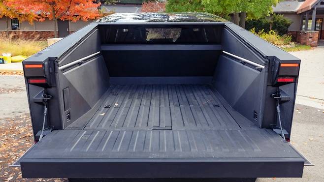 사이버트럭은 디자인뿐만 아니라 트럭으로서의 본질적인 성능도 놓치지 않았습니다. 깊은 적재함은 EV 픽업 중 가장 크며, 테일게이트와 토노 커버를 닫은 상태에서도 페이로드 시뮬레이션용 말 매트를 모두 수용할 수 있는 유일한 경쟁자입니다. 모터트렌드의 디지털 디렉터 에릭 존슨은 “뒤에 아무것도 없는 것처럼 끌어당깁니다”라고 사이버트럭의 강력한 견인력을 칭찬했습니다.