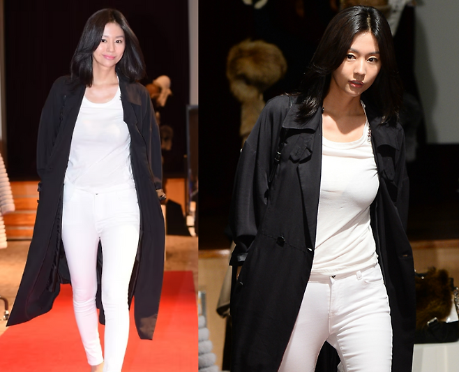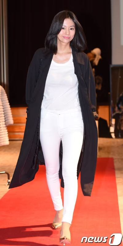 서유정은 화이트 티셔츠와 화이트 스키니진으로 슬림한 라인을 자랑하는 스타일을 선보였습니다. 여기에 블랙 롱가디건을 매치해 세련된 느낌을 더했으며, 간결한 구두를 신어 깔끔하면서도 고급스러운 분위기를 완성했습니다.